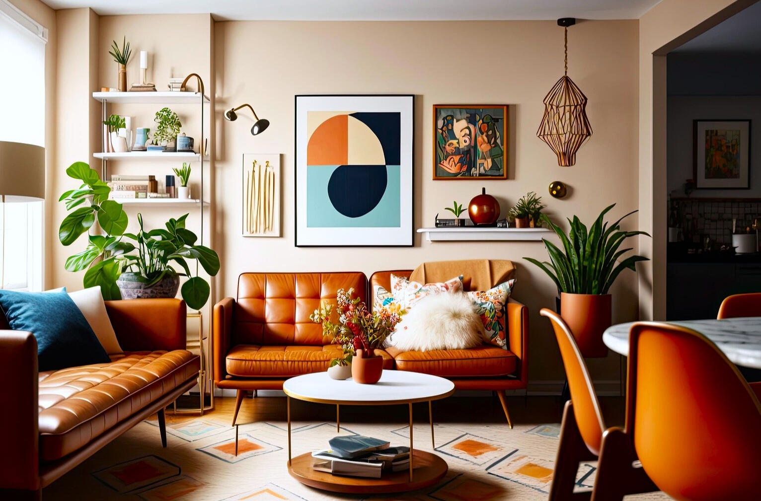• Incandescent lighting casts a warm, yellow tone onto walls.